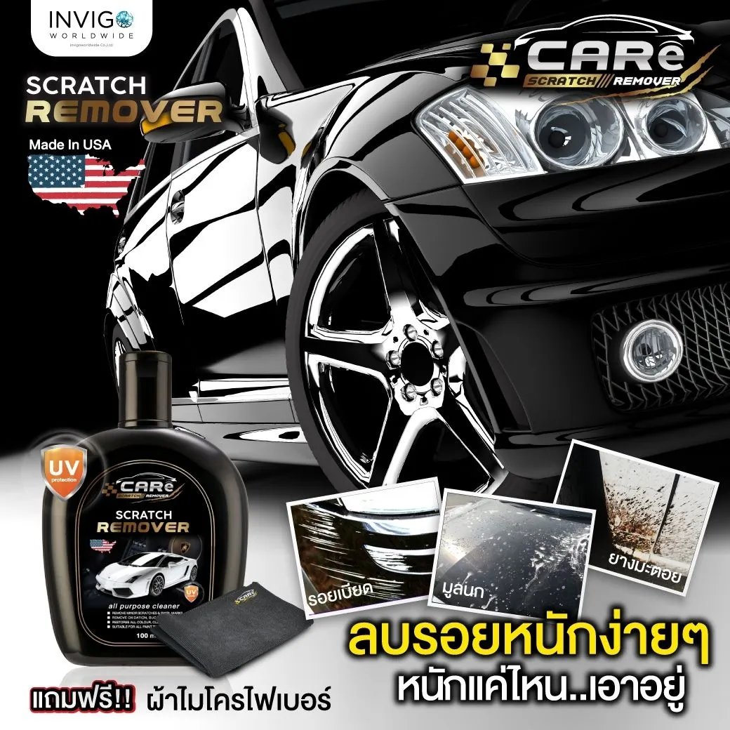 รถเป็นรอย ลบเองได้ ด้วย น้ำยาลบรอยขีดข่วนสีรถยนต์ โลหะ ไฟหน้ารถ รอยเฉี่ยวชน รอยขนแมว หรือส่วนที่เป็นพลาสติกด้าน จบปัญหาทุกรอยที่ไม่ลึกถึงเนื้อสี ไม่ทำให้เกิดรอยด่างหลังใช้งาน ด้วย CARe Scratch Remover แถมฟรี ผ้าไมโครไฟเบอร์ จำนวน 1 ผืน