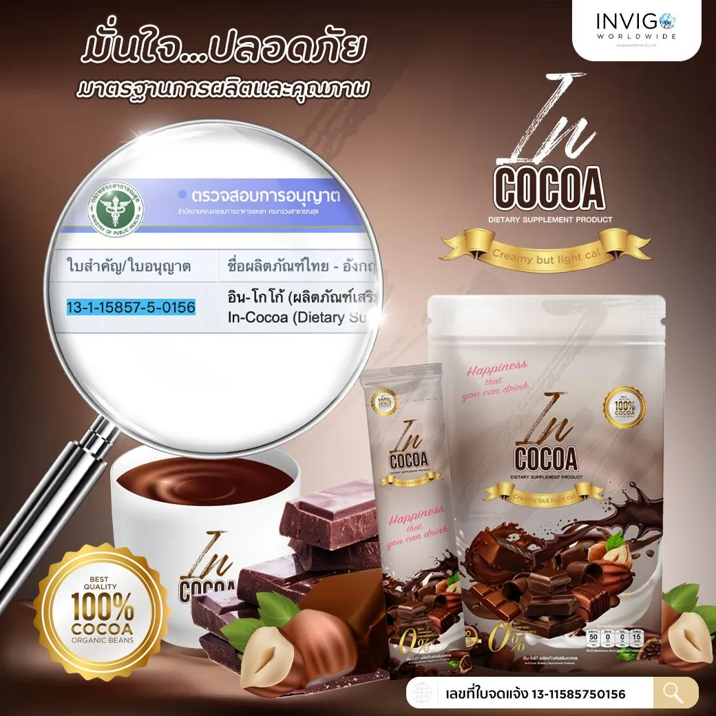 IN Cocoa อิน โกโก้ โกโก้ลดน้ำหนัก โกโก้เพื่อสุขภาพ อร่อยเข้มข้น เต็มรสชาติ อยู่ท้อง อิ่มนาน 8-10 ชั่วโมง หุ่นดี ไร้ไขมันส่วนเกิน เบิร์นง่าย ได้ประโยชน์ อร่อยเข้มข้นถึงใจ