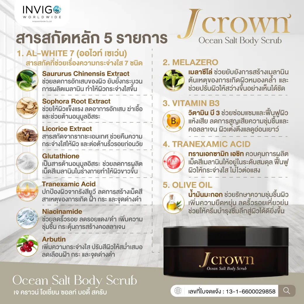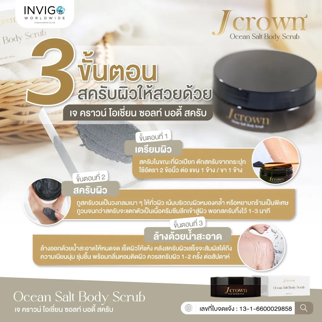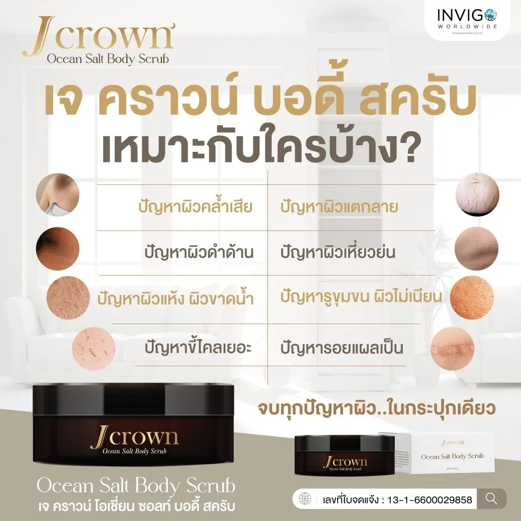 J CROWN เจ คราวน์ ขัดขี้ไคล สครับขัดผิวขาว จ๊ะ นงผณี แก้ผิวแตกลาย ลดเหี่ยวย่น ผิวไม่เนียน ผิวดำด้าน ผิวขาดน้ำ เพิ่มความชุ่มชื้น